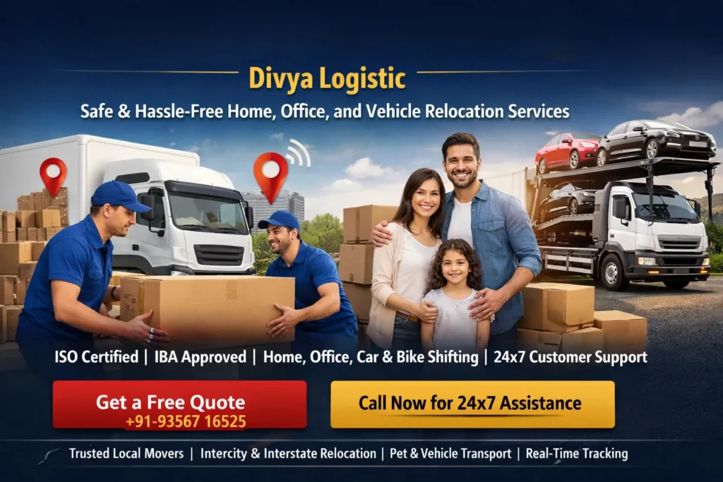 Divya Logistic offers ISO 9001:2015 certified, IBA-approved relocation services including home shifting, office shifting, car & bike transport, and secure storage solutions. With GPS-enabled vehicles and 24×7 customer support, we ensure your move is smooth, safe, and timely.